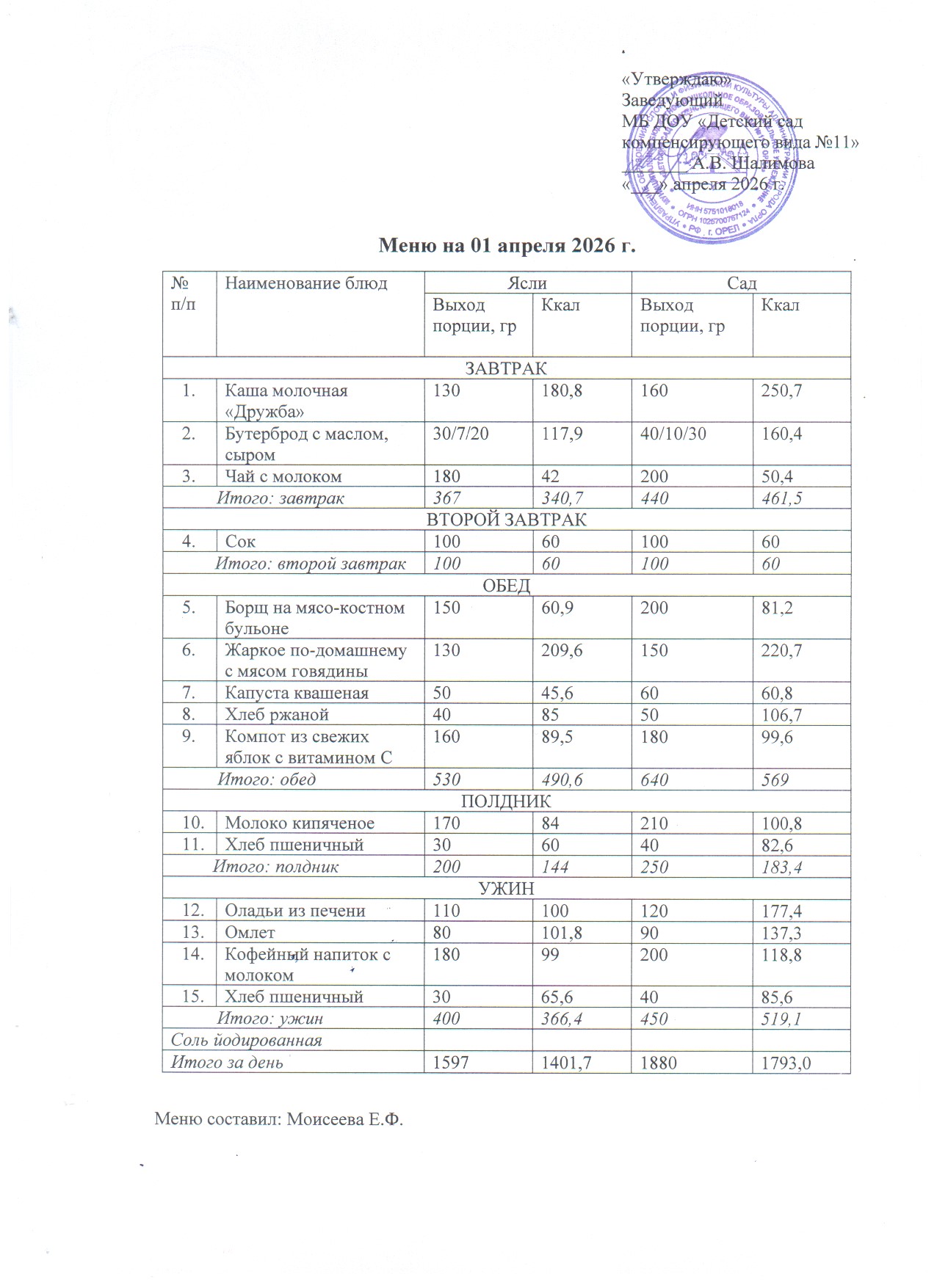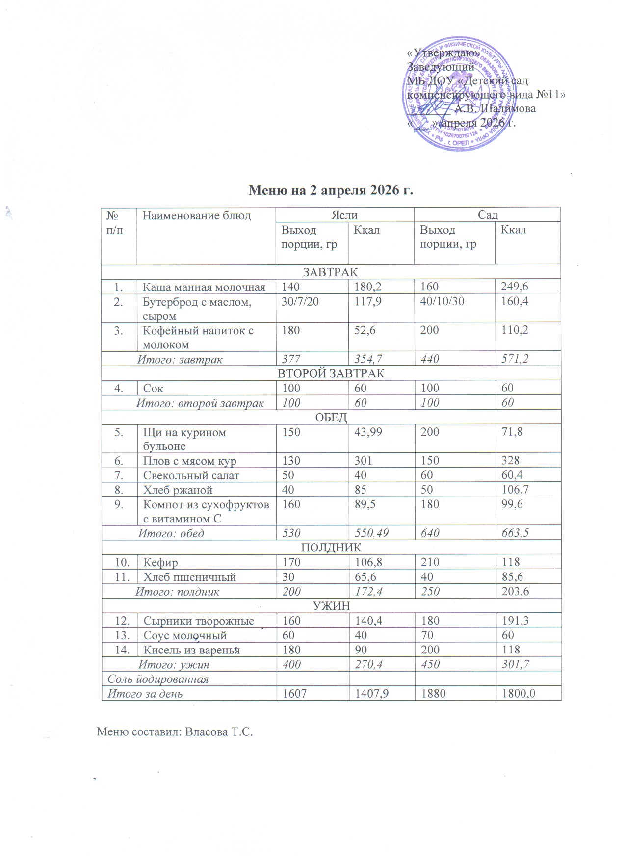 Информация об утвержденном меню ежедневно помещается на информационных стендах в групповых помещениях детского сада.