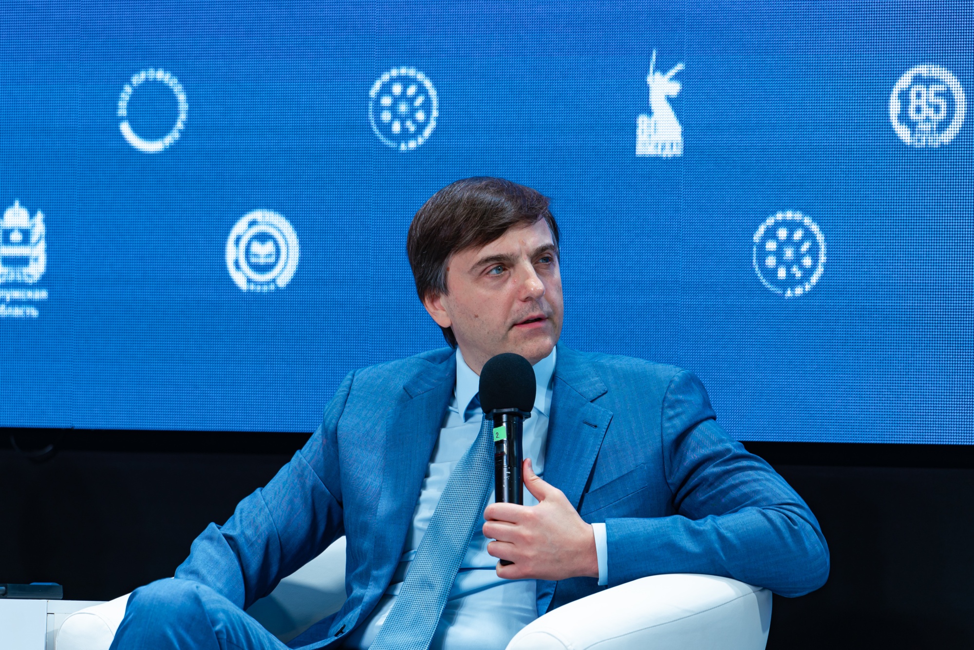 Министр просвещения на сцене пообщался со школьниками – победителями различных этапов чемпионата «Профессионалы» в категории «Юниоры». Он, в частности, рассказал ребятам о потенциале федеральных технопарков профессионального образования и о мероприятиях, которые в них проходят.