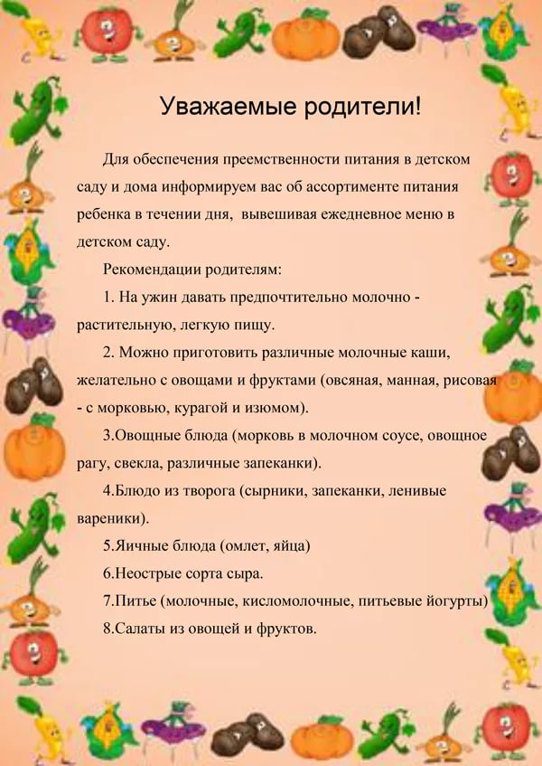 - Знакомиться с меню — его ежедневно вывешивают в детском саду.